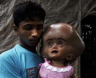 Нет ничего хуже, когда больны твои дети или близкие люди. На фотографиях ниже Абдул Рахман из Агартала (Индия), на руках у него его 18-месячная дочь Руна, страдающая от редкого заболевания - гидроцефалии. Болезнь привела к увеличению головы девочки и теперь размер ее в три раза больше размера головы здорового человека.