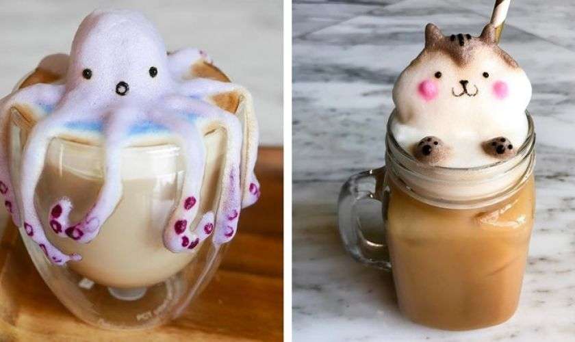 17-летняя Дафна Тан – художница-самоучка из Сингапура. Но на ее скульптуры могут полюбоваться лишь любители свежего кофе с молоком. Дана создает свои творения из молочной пенки. Для своего творчества она создает специальную пенку с использованием соевого молока, добавляя в нее воду и порошок рожкового дерева. На каждую фигурку у нее уходит около 20 минут. Для раскрашивания она использует пищевые красители и тертый шоколад. Такую красоту даже пить жалко!