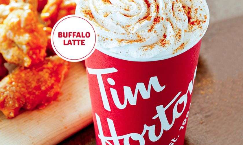 Канадская сеть кофеен Tim Hortons создала свою версию осеннего кофейного напитка — латте со вкусом куриных крылышек.