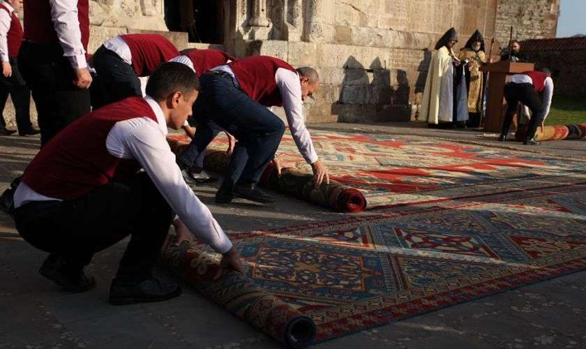 Впервые за тысячи семисот летнюю историю существования Армянской Апостольской Церкви произошло не просто подношение, а адресное производство Именных ковров ручной работы. Событие настолько уникальное, что у церкви в которой все систематизировано и задокументировано, не было специального обряда освящения. Нет конечно обряд освящения в "Святом Маштоце" существует, вплоть до порядка освящения подсвечников и столов. Но именно для данного события, с благословения Его Высокопреосвященного Владыки Архиепископа Паргева, был разработан новый ритуал, дополненный и расширенный.