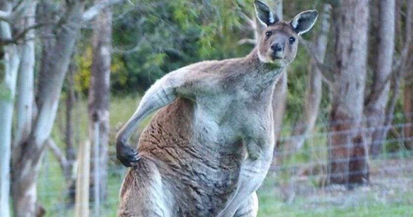Этого мощного кенгуру сфотографировал Уильям Томсен из Олбани (Западная Австралия). Приближаться к нему вряд ли хорошая идея. В интервью местной газете автор снимка рассказал, что сфотографировал животное среди группы других кенгуру, пока гулял на природе с сестрой. Большинство кенгуру, завидев приближающихся людей, разбежались, но только не этот качок.