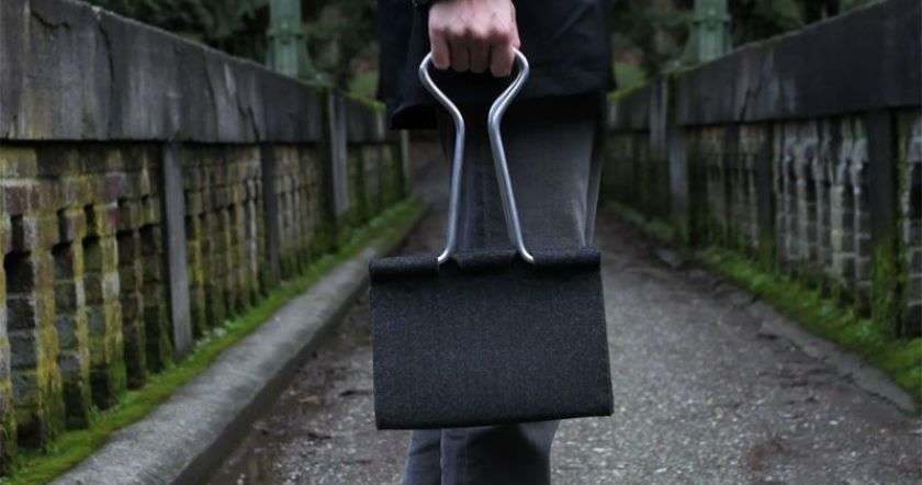 Дизайнер из США Питер Бристол помудрил немного с зажимом для документов, изменив размер и материалы, и получил оригинальную сумку "Clip Bag". Для создания оигинального изделия Питер использовал войлок и алюминиевые трубки.