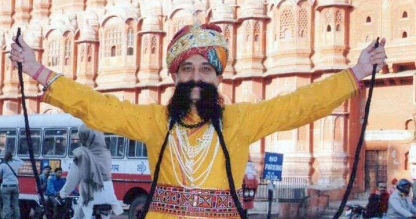 62-летний Рам Сингх из индийского города Джайпур с гордостью удерживает титул обладателя самых длинных усов в мире. Он начал отращивать усы с 1970 года, и теперь их длина составляет 5,6 метра. На уход за своим сокровищем, занесенным в Книгу рекордов Гиннесса, Рам ежедневно тратит 2 часа.