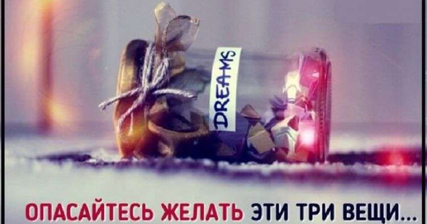 Как многие из вас знают, мечты являются главным двигателем прогресса, причем не только отдельной личности, но и человечества в целом. Мечты рождаются благодаря желаниям, некоторые из которых просто неприемлемы. Мысли материальны. Мечтая о чем-то светлом, вы создаете себе прекрасное будущее, которое по маленьким шажкам становится все более и более ощутимым, близким. Если вы будете зарождать в себе негатив при помощи неправильных желаний, то удача просто отвернется от вас.