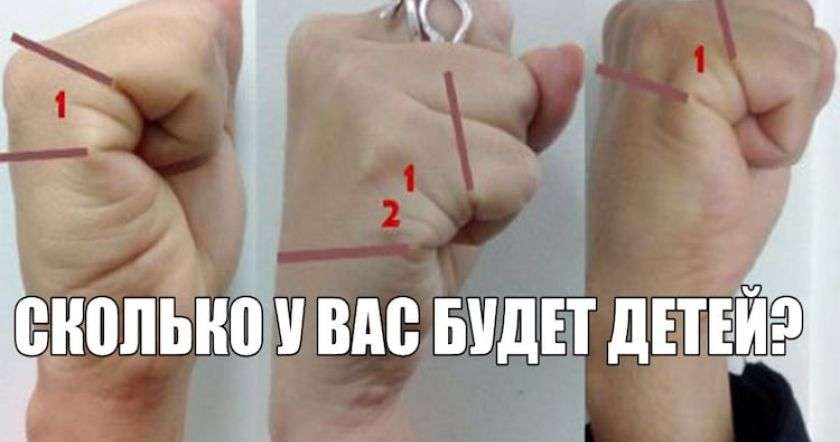 Количество линий на сгибе — это и есть количество ваших детей! Учтите: сгибы на фалангах мизинца не считаются, и линии должны быть чётко видимые — не пытайтесь высмотреть едва заметные морщинки.
