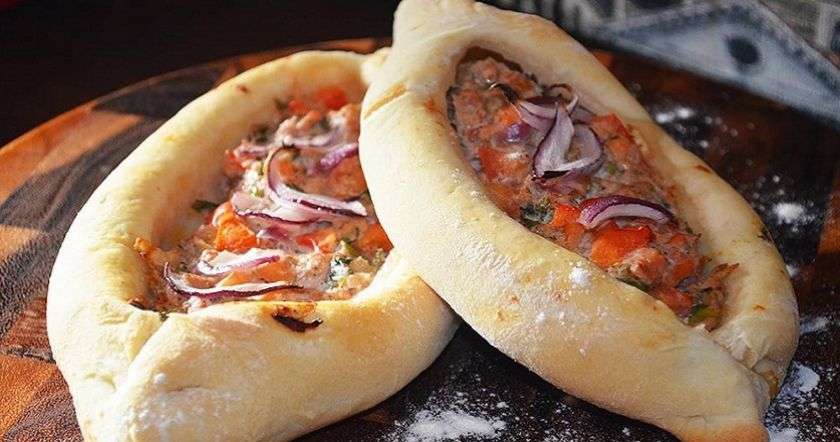 - Идеальное тесто — мягкое и пластичное. Когда оно готово, отставьте его сторону на 20 минут. Раскатайте 2 лепешки. Сформируйте продолговатые пласты с бортиками и острыми уголками. Получатся 2 лодочки.