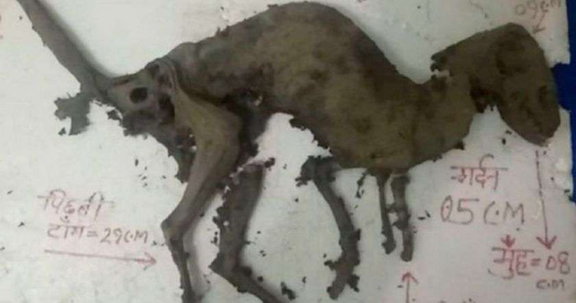 Похоже, что это эмбрион какого-то животного с генетическими нарушениями. Может, например, принадлежать к подсемейству козьих. Радиоуглеродный анализ подскажет, сколько лет назад погибло животное, и даст ключ к разгадке», – сообщил доктор палеонтологических наук из Дельфийского университета Аарян Кумар.