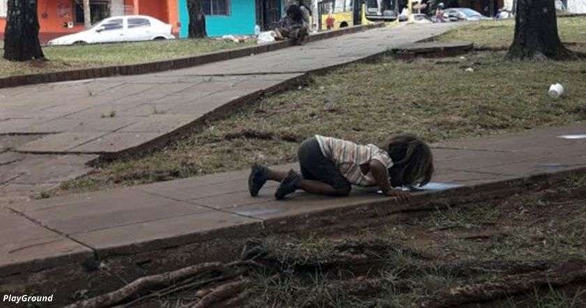 В сети появились шокирующие снимки, на которых маленькая девочка стоит на четвереньках и пьёт воду из грязной лужи