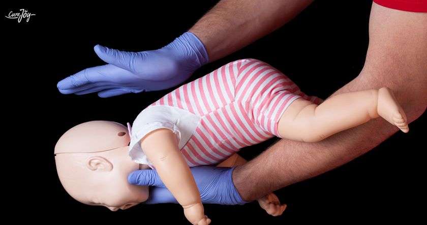 Если же ситуация серьезнее, вам нужно помочь ребенку. Это можно сделать при помощи ударов по спинке и сжатием грудной клетки.