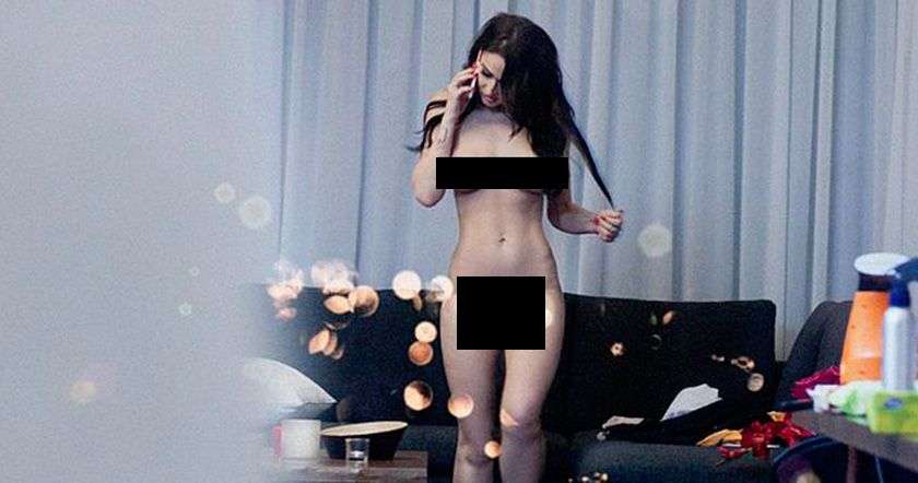 Новая фотосессия выполнена таким образом, что кажется, будто фотограф подсматривает из окна за голой Аленой Водонаевой, которая демонстрирует обнаженные ягодицы и грудь.