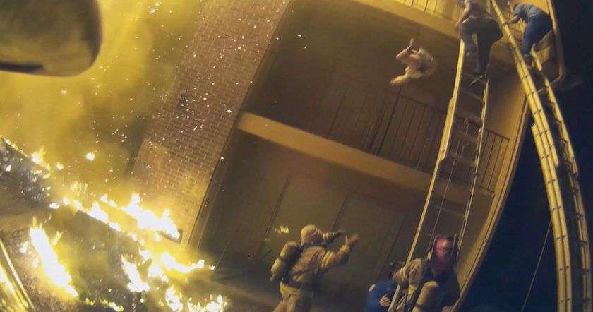 Момент такого спасения попал на камеру GO-PRO одного из сотрудников пожарной службы.
