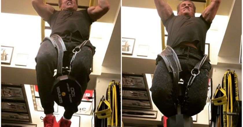 Актер регулярно выкладывает в Инстаграм видео, в которых занимается спортом так, как и не снилось некоторым 25-летним хиляками! Свежайший ролик нас особенно потряс: на нем 71-летний Сильвестр Сталлоне подтягивается с дополнительным весом на поясе в 45 кг! Актер подписал видео так: «Еще одна простая тренировка! Ты стар ровно настолько, насколько себя чувствуешь и насколько себя чувствуют твои суставы!».