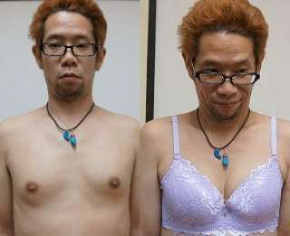 Поскольку он запасся второй парой силиконовых грудей, финальный результат ожидался потрясающим. Иллюзия была готова, когда реальный бюстгальтер был одет сверху.