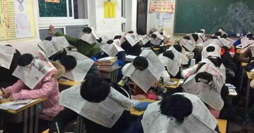 В Китае со списыванием борются беспощадно и на государственном уровне. Во-первых за это страшное дело светит 3 года тюрьмы или большой штраф, во-вторых во время экзаменов принимаются предупредительные меры. Например, запускаются дроны, глушащие сотовую связь, или на учащихся надевают антисписывательные уборы из газет, картона или листов бумаги.