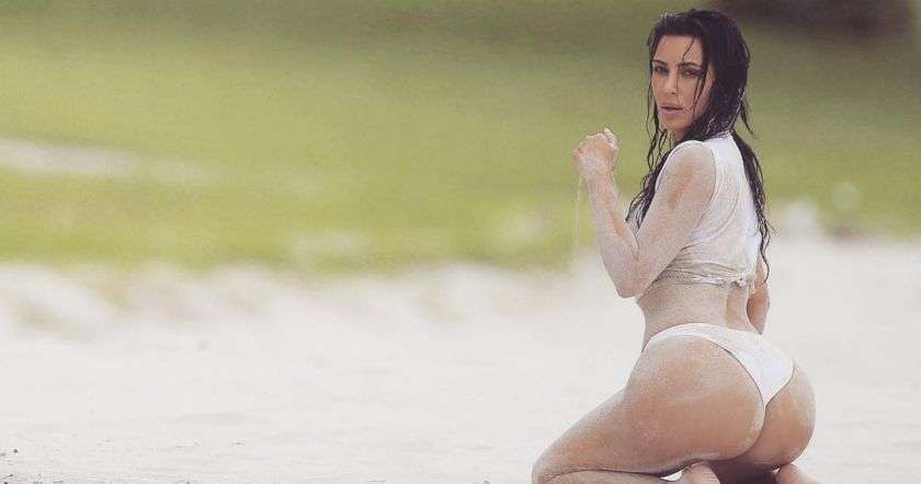 Американская звезда реалити-шоу Ким Кардашьян использует свою пятую точку в качестве стола.