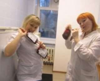 Две сотрудницы больницы города Александровска фотографировались рядом с тяжелобольными людьми, "пили" донорскую кровь и жонглировали клизмами.