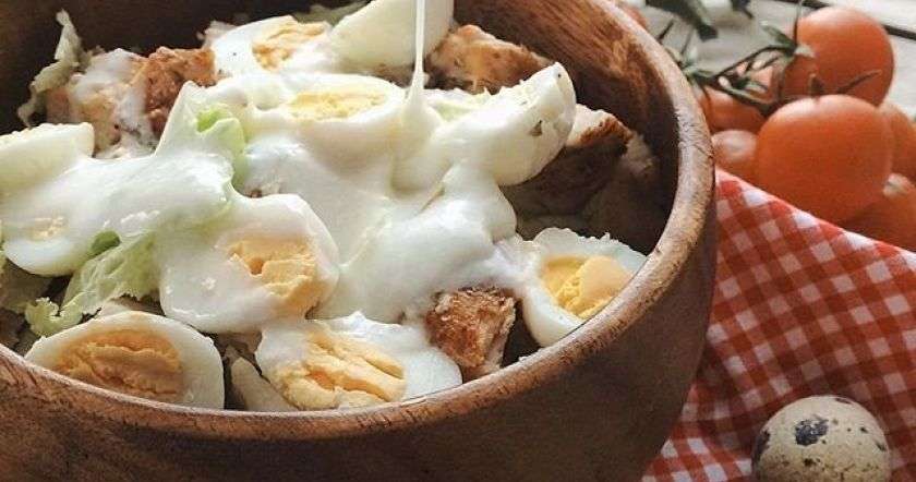 Нарезаем все ингредиенты мелко и смешиваем, заправляем йогуртом.