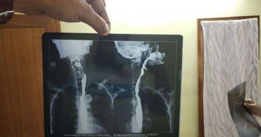 46-летний житель Индии, Дипак Нанди, случайно проглотил зубные протезы, в результате чего серьезно повредил пищевод, не смог глотать и начал страдать от слюнотечения. Мужчина долго не говорил родственникам, что с ним произошло, а к тому моменту, когда признался, в его горле уже образовался свищ. Врачи провели операцию, но из-за сильного повреждения пищевода еда из него вытекала, и в течение следующих двух с половиной лет Дипака кормили через трубку. Мужчина очень тяжело переживал этот период: закрыл магазин, перестал общаться и стал затворником.
