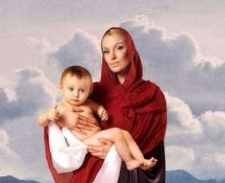 Анастасия Волочкова органично вписалась в образ Мадонны. Своей радостью она поспешила поделиться с подписчиками на ее страничку в Твиттере. Однако злые языки в прекрасной картине, вернее в лице ребенка на руках Волочковой немедля усмотрели Владимира Путина.