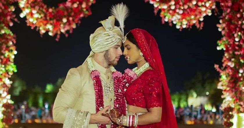 5 декабря Приянка и Ник Джонас разместили снимок со свадьбы на индийский манер: Приянка была облачена в роскошное красное платье и однотонную фату, а американский певец и актер примерял традиционный наряд и чалму с пером.