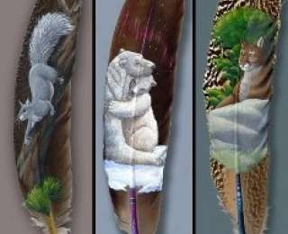 Художница Джули Томпсон родившаяся и выросшая на Аляске использует перья в качестве холстов для своих картин.