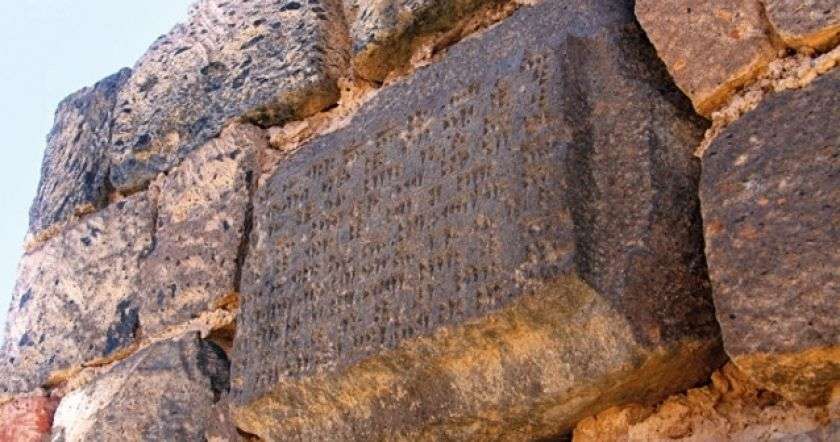 Этот базальтовый камень — своеобразное свидетельство о рождении Еревана. На нем выбита клинописная надпись урартского царя Аргишти I об основании города Эребуни (Еревана) в 782 г. до н.э. Хранится на территории Музея-заповедника Эребуни, в Ереване.