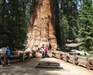 2. США, штат Калифорния. Национальный парк Секвойя. Здесь растет гигантская секвойя Генерал Шерман. Это не только самая старая на Земле секвойя, но и самая высокая из своих собратьев. Ее высота составляет 84 метра, а обхват у основания – 31 метр. Приблизительный возраст этого гиганта - 2300-2700 лет. Рядом с этим гигантским живым существом человек кажется таким маленьким и хрупким! Недаром секвойя Генерал Шерман привлекает множество туристов. Они описывают это дерево, как «огромный красно-оранжевый камень, вершины которого невозможно увидеть». Удивительно, но это дерево до сих пор растет, ежегодно прибавляя в обхвате приблизительно 1,5 сантиметра. Около дерева американцы, любящие все переводить в цифры, на табличке обозначили, что из древесины секвойи можно было бы построить 40 домов, а если бы ее положить рядом с пассажирским поездом, то она оказалась бы гораздо длиннее. Но дело ведь не в большом объеме древесины! Когда туристам говорят, что дерево росло еще до царя Тутанхаммона, то у них захватывает дух.