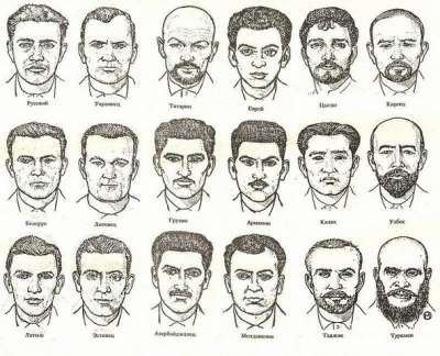 Образы «братских» закавказских народов сделаны по-моему с одного лица. Только «грузина» растянули за уши в ширину, «армянина», наоборот, за уши сплюснули, а «азербайджанца» трогать не стали. Невольно вспоминаются японцы в «Мимино»: «Как эти русские похожи друг на друга!»