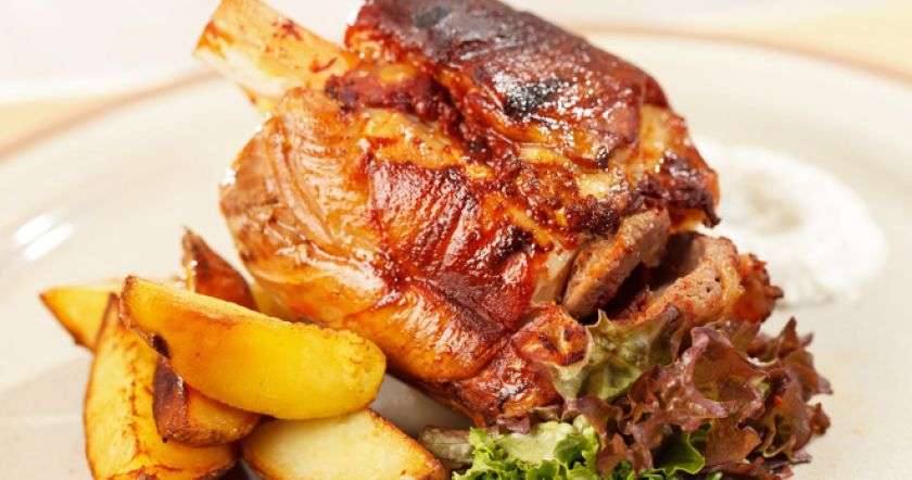 - Смешай горчицу, ворчестерский или соевый соус и мед. Натри рульку. Также можешь сбрызнуть соусом картофель.