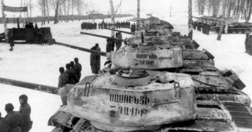 8. В годы войны, по инициативе архиепископа Геворга Чорекчяна, на средства армянской диаспоры была создана танковая колонна «Давид Сасунский», в состав которой на фронт было отправлено 43 танка Т-34. В марте 1944 году танковая колонна участвовала в боевых действиях на Украине, затем присоединив к себе ещё 22 танка, приняла участие в боях на Прибалтийском фронте.