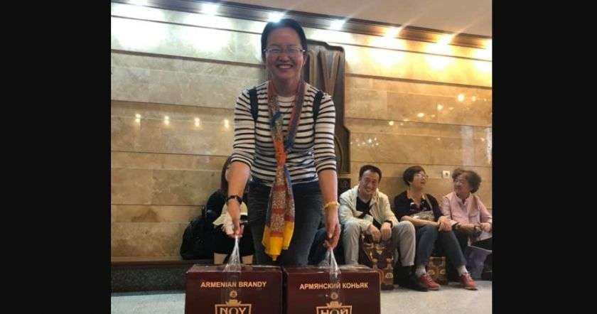 Фотографию счастливой туристки с двумя коробками армянского коньяка опубликовала в сети гид Роза Ованнисян.