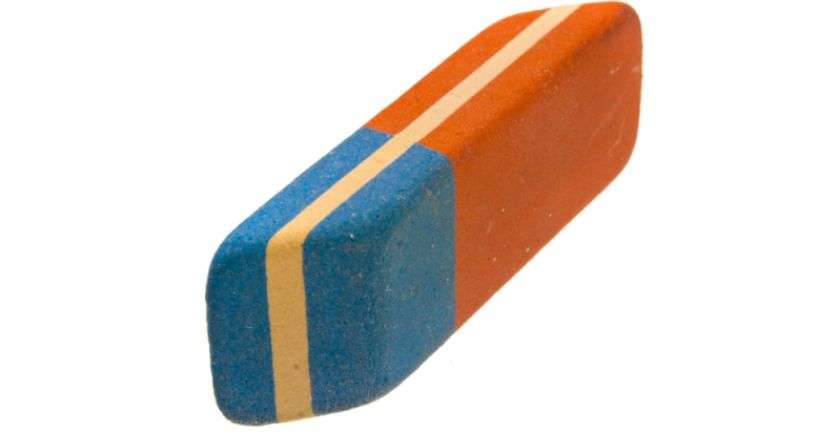 Далеко не у каждого школьника бывает пенал, в котором есть все канцелярские принадлежности, но как выглядит типичный ластик знают все. Он состоит из твердой и мягкой части, окрашенных в разные цвета. И почему-то мы привыкли считать, что синяя часть, которая сильнее трет бумагу, предназначена для стирания шариковой ручки.