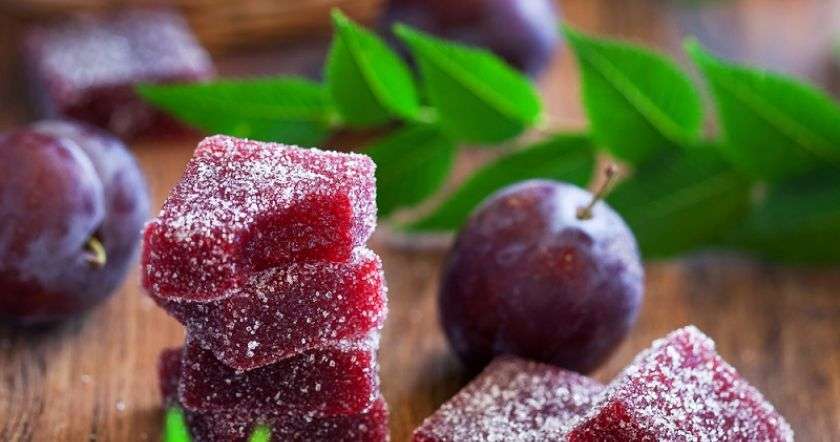 - Когда масса остынет, нарежь ее на кусочки. При желании посыпь сахаром. Сливовый мармелад готов.