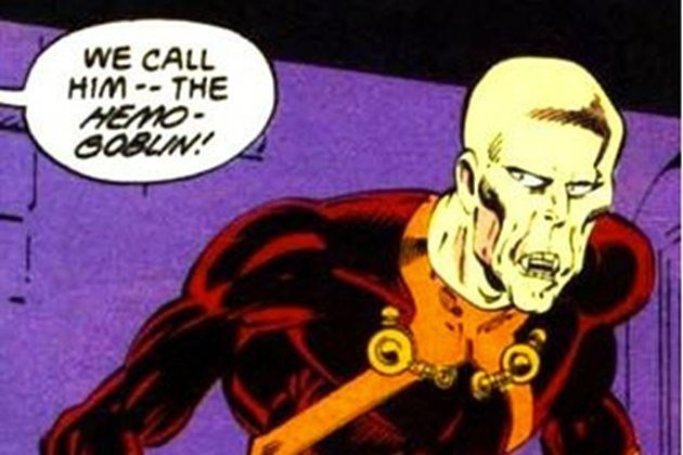 Не каждый супергерой находит отклик у аудитории: на каждого Бэтмена и Росомаху приходится один Аквамен. Однако то чем руководствовалась творческая группа, которая представила «Гемо-Гоблина», понять очень сложно. Гемо-Гоблин был одним из героев комиксов «Новые стражники» компании DC Comics, вышедших в 1988 году. Он был ВИЧ инфицированным вампиром, которого использовала группа сторонников превосходства белой расы, для того, чтобы заражать национальные меньшинства. Ему удаётся заразить ВИЧ супегероя-гея Экстрано (Extrano), после чего он сам умирает от СПИДа, и всё за один выпуск комикса.