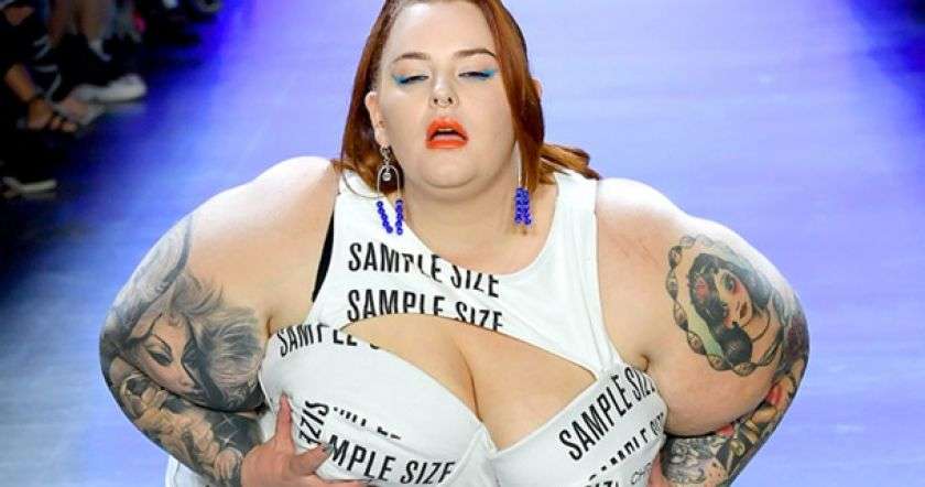 34-летняя Тесс Холлидей стала известна благодаря своим необычным параметрам. Самая полная плюс-сайз-модель в мире всегда выставляет напоказ несовершенства своего тела, а также с удовольствием дефилирует по подиуму в нижнем белье.