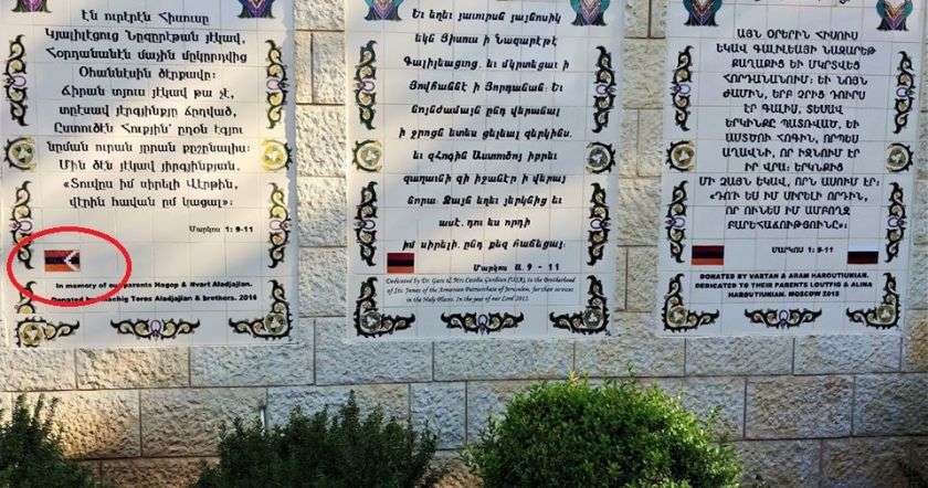 Меня знаете, что удивило? При входе в комплекс крещения размещены цитаты из Библии на десятках языков, включая армянский. Но обратите внимание, тут целых три армянских диалекта, причем один из них арцахский и даже стоит флажок Арцаха. Неожиданно, да?
