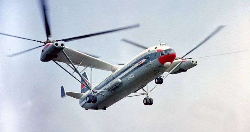 Вертолет, модели В-12 считается самым тяжелым. Отличается от других тем, что имеет боковое расположение винтов на своих крыльях обратного сужения.