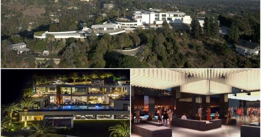 Вилла площадью 9 300 квадратных метров расположилась на вершине холма, откуда открывается панорамный вид на Лос-Анджелес и Тихий океан. Дом состоит из нескольких секций и вмещает 20 спален. Площадь главной составляет 460 квадратных метров. Изначальный проект предусматривал, что одну из стен в доме заменит аквариум с живыми медузами, но потом от этой идеи отказались. На прилегающей территории есть гараж на 30 автомобилей, боулинг и четыре бассейна. Будущие хозяева смогут развлечь себя и своих гостей в 45-местном кинотеатре IMAX и собственном ночном клубе. На территории вокруг здания площадью в 20 тысяч футов (1 850 квадратных метров) высадят искусственный газон. Это связано с принятым в 2018 году законом о засухе, который регулирует объемы водопотребления на душу населения.