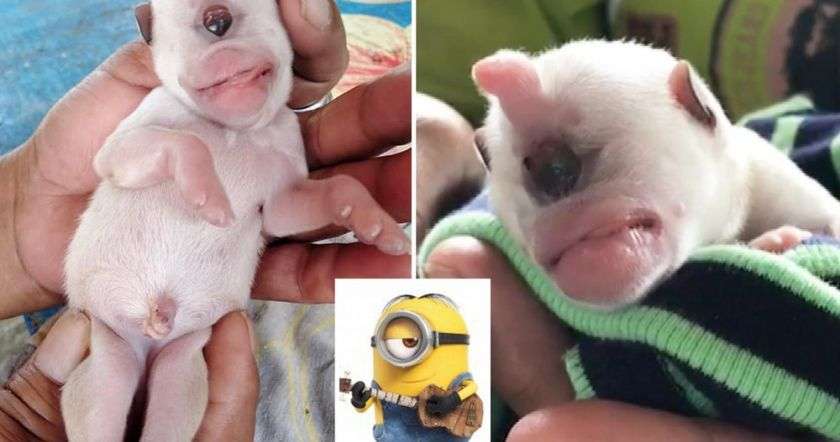 У щенка, родившегося со странностями, только один глаз, расположенный посередине головы, и рот с большими розовыми губами.