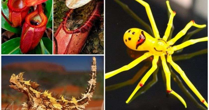 Ящерица молох. Молох способен впитывать воду чешуйками с любой части своего тела. Сзади на шее у него имеется вырост, напоминающий фальшивую голову, чтобы обманывать хищников. Встречается только в пустынных районах Австралии.