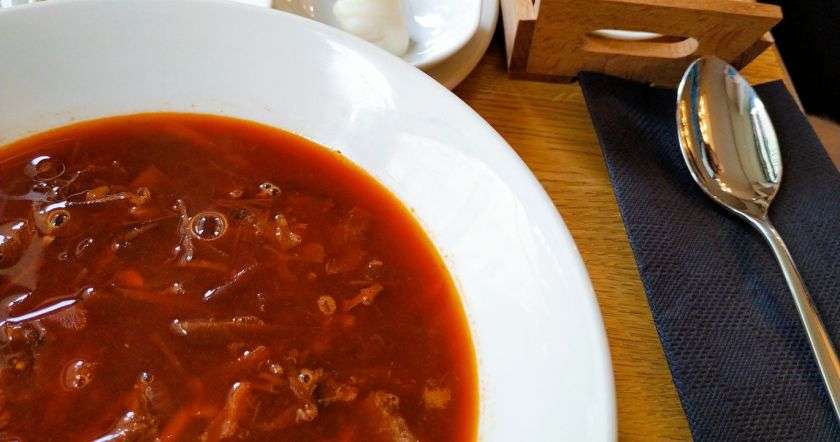 - Добавить овощную заготовку и довести до кипения. Выдавить зубчик чеснока и варить еще пять минут. Дать борщу настояться перед подачей.
