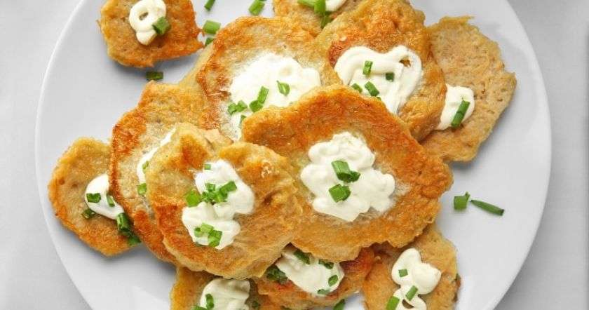 - Повторяй процедуру, пока не закончится масса. Я обычно складываю деруны в казанок с толстыми стенками и пересыпаю измельченным чесноком. Шкварки идут туда же. Готово!