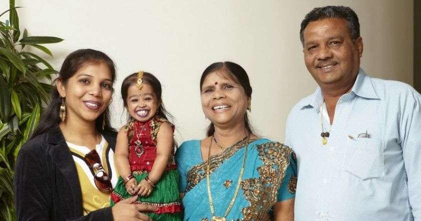 Джиоти Амджи с ростом 62,8 см на 7 см короче, чем предыдущая обладательница титула, американка Бриджит Джордан. Джиоти была удостоена звания, когда она отпраздновала свой 18-й День рождения в 2011 году в городе Нагпур.