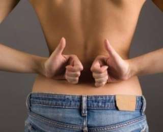 4. Исходное положение - ноги на ширине плеч, руки в замке за спиной. Медленно потянитесь вперед, максимально выгибая позвоночник и отводя сцепленные в замке руки назад. Затем вернитесь в исходное положение. Повторите упражнение 6-8 раз.