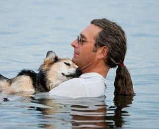 Напомним, у четверолапого питомца Джона развился артрит и дисплазия тазобедренных суставов. От боли животное не могло нормально даже спать. Мужчина обнаружил, что облегчить состояние любимцу помогает вода. И тогда они стали ходить на озеро, где продолжительное время плавали, Джон брал его на руки, животное расслаблялось и засыпало, положив голову на плечо хозяину.