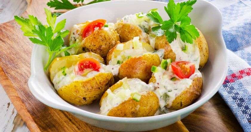 Картофель в лодочках может быть основным блюдом, но также подойдет в качестве закуски. Это весьма калорийное кушанье: целых 500 калорий на одну порцию. Также это блюдо сочетает в себе углеводы, белки и жиры, которые должны быть в одном приеме пищи. Желаем приятного аппетита!