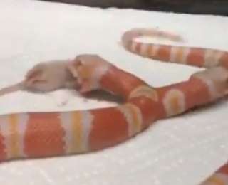Калифорнийская коралловая змея-мутант ест двух мышей, используя обе головы. Судя по видео, змея чувствует себя отлично, никакого дискомфорта в глазах пожирателя не обнаружено. А вот мышам пришлось не сладко.