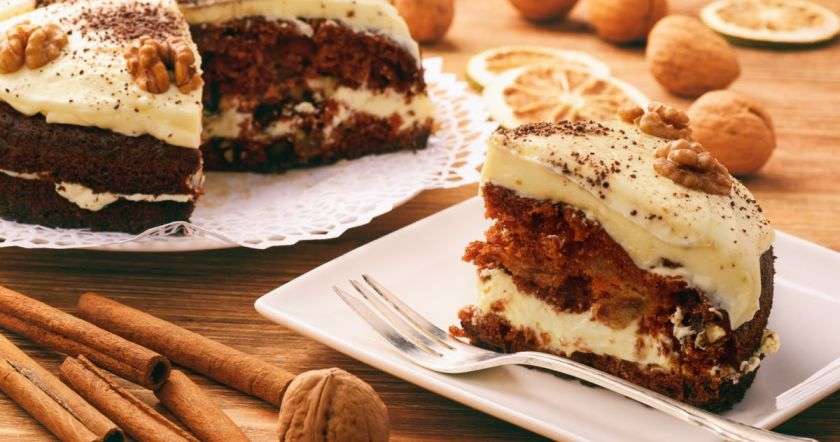 Когда готовый бисквит полностью остынет, разрежь его напополам и смажь кремом. После чего измельчи оставшуюся курагу с орехами и посыпь полученной крошкой торт.