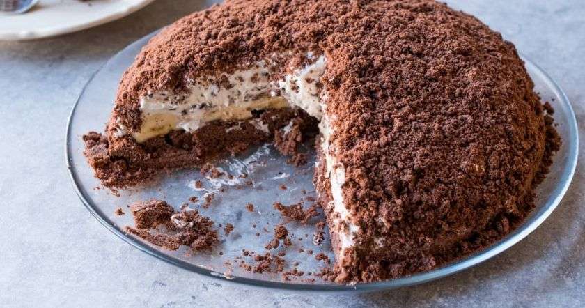 © Depositphotos - Добавляем крем к бананам, в середину торта. Часть коржа, которую мы достали, также измельчаем в крошку и густо посыпаем торт. Ставим десерт в холодильник на 2 часа, а затем подаем на стол.
