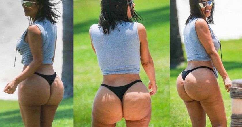 На днях в Сети появились очередные фотографии Ким Кардашьян с пляжа, на которых она выглядит просто изумительно — крепкие натренированные ноги, тонкая талия, пресс, пышная грудь и ни грамма целлюлита. Все подчеркнуто миниатюрным купальником, тщательно заплетенной косой, броским макияжем и крупными серьгами. Не женщина, а сказка!